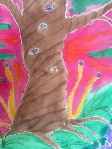 Here's a small, 9" x 12", painting done with both the liquid colors and the brush markers.